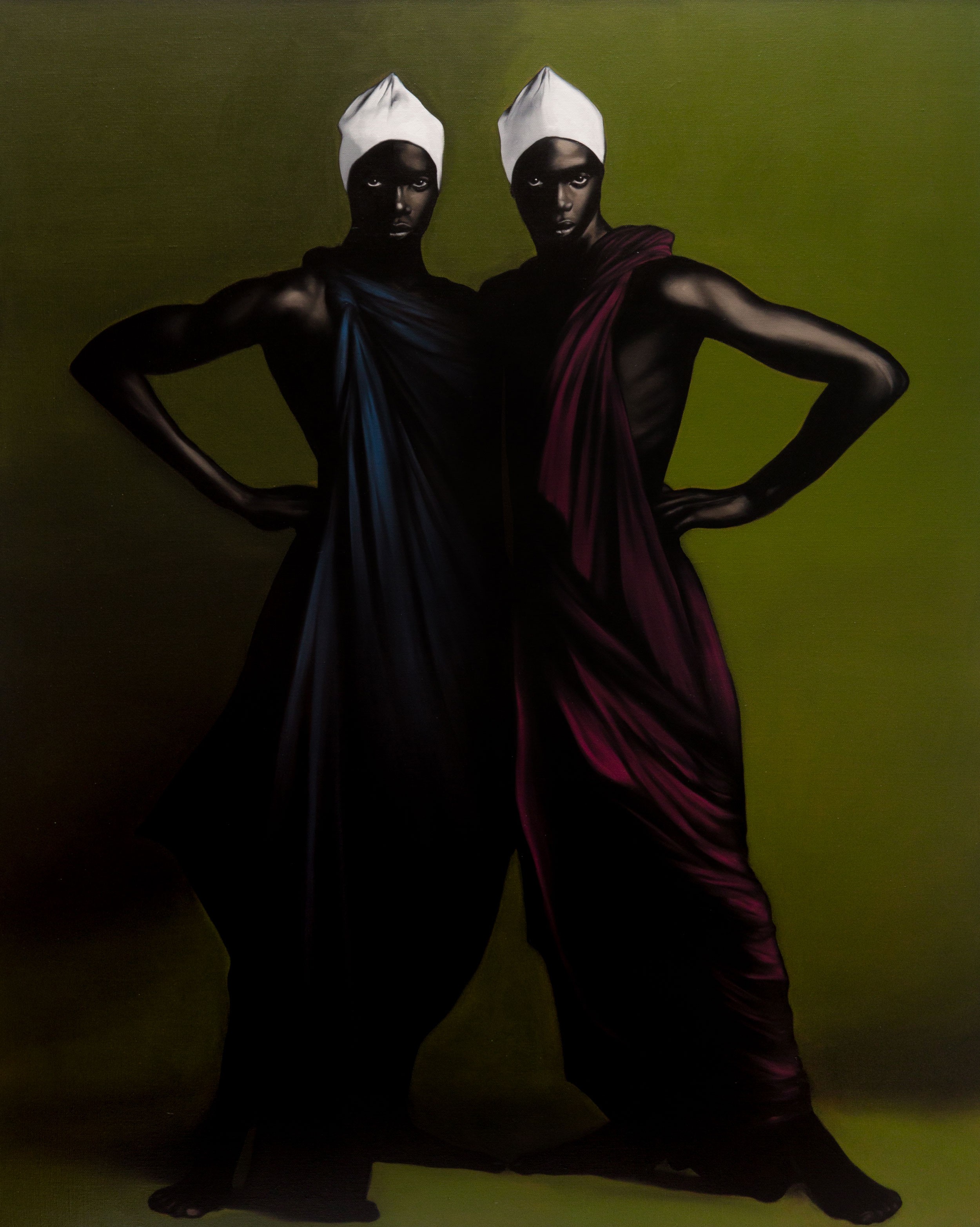 Gustavo Nazareno is known for the range of sources that his work draws on, from personal and cultural histories, fables and religious tales to Renaissance painting and fashion photography. His output mostly comprises oil paintings and charcoal drawings, both notable for the artist’s deft manipulation of light and dark that recalls chiaroscuro, a technique of rendering illumination and shadow dating back to the fourth century. At Nazareno’s hand, the dizzying breadth of his reference points, encompassing the cultural and spiritual histories of Africa, Europe and his home of South America, is distilled into enigmatic images that cannot be consigned to a single artistic category or movement.