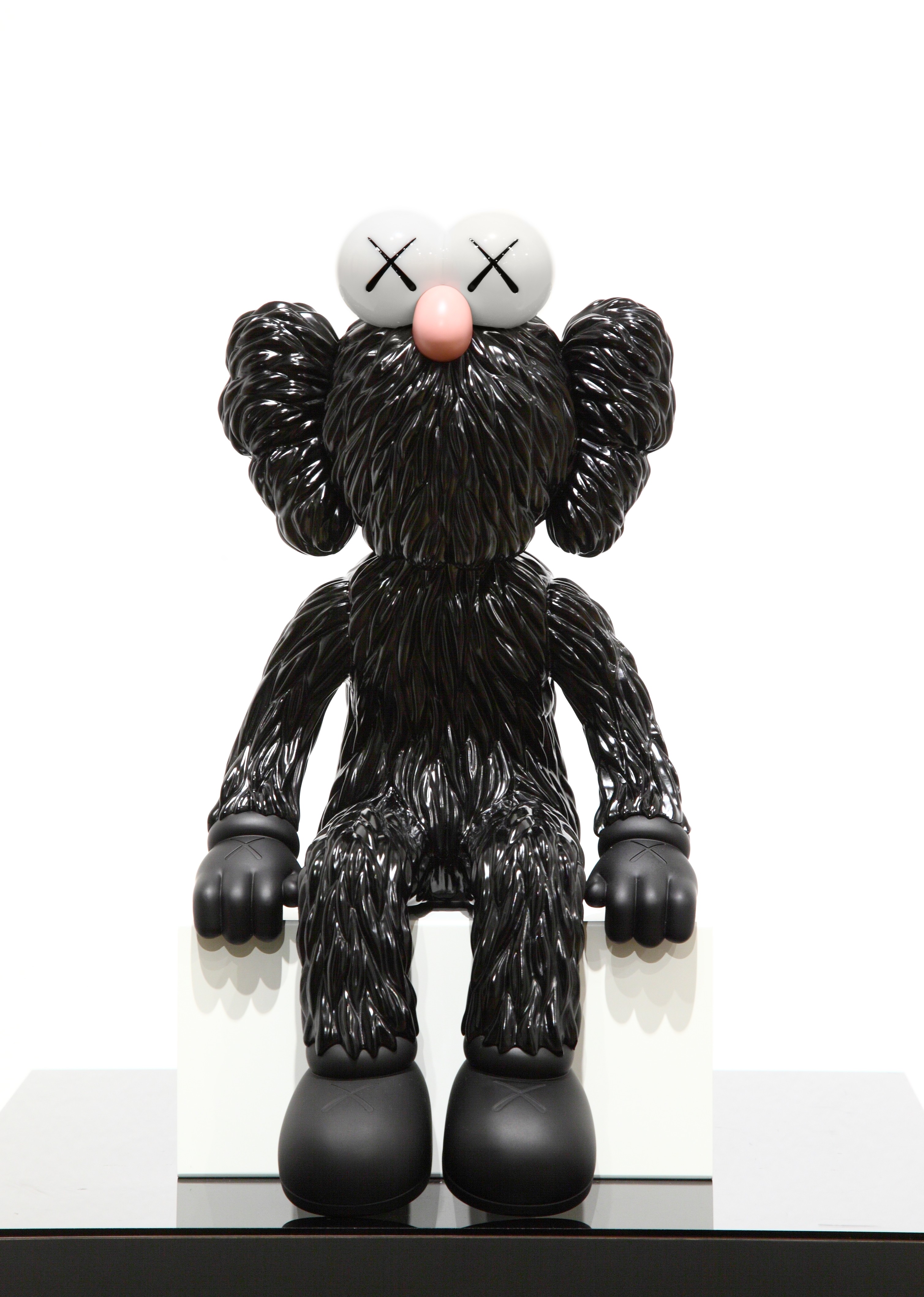 Ambiguity and duality are central to KAWS’s practice, which often revolves around the reimagining of familiar cartoon figures. Characters such as COMPANION, CHUM and BFF draw on icons of popular culture, but are recast with his signature motifs—crossed-out eyes, rounded skulls and exaggerated gestures. These figures occupy a space between playfulness and melancholy, suggesting both comfort and unease. By reshaping images from mass media into new forms, KAWS creates works that reflect the emotional range of contemporary life while also questioning the boundaries between commercial imagery and fine art.