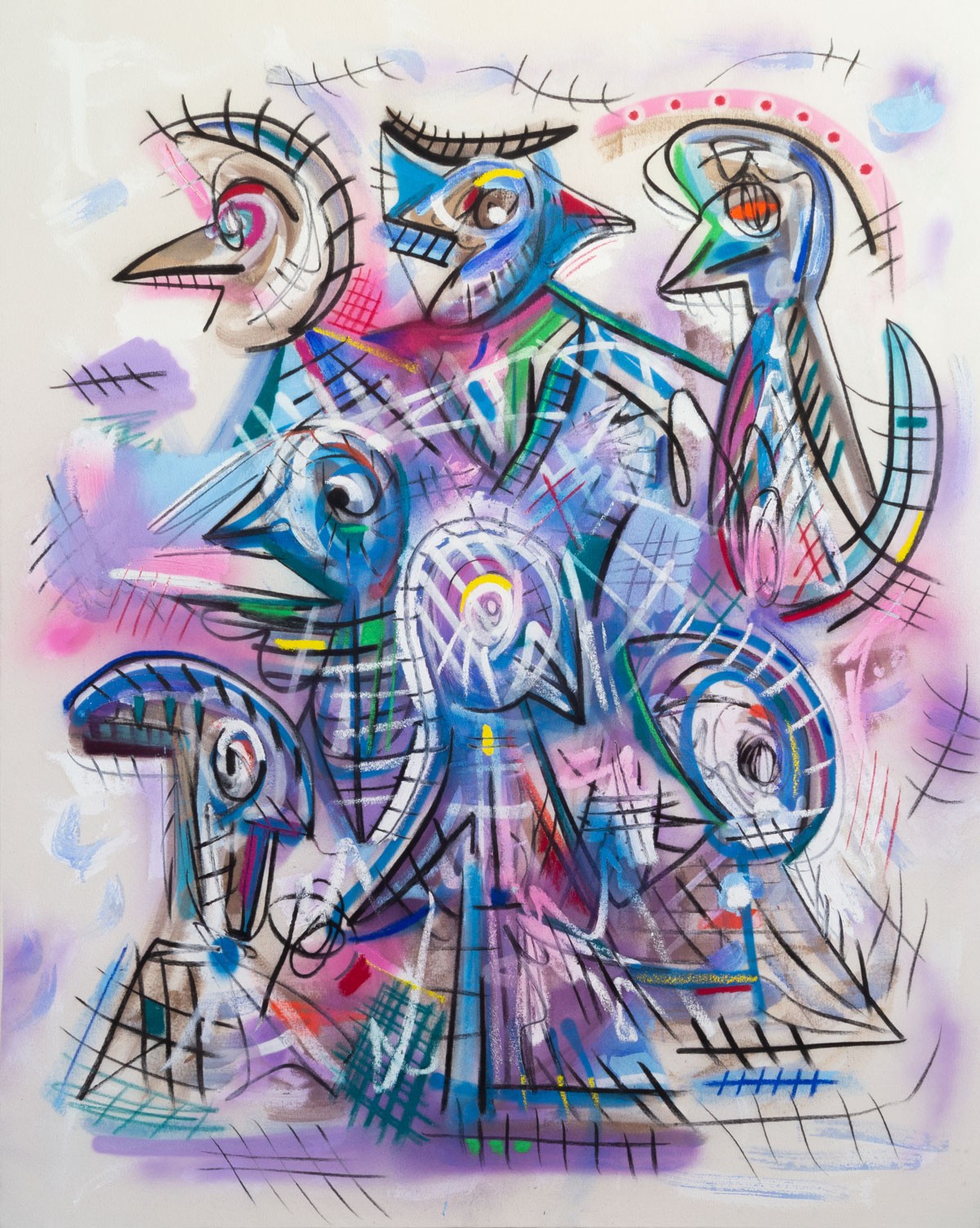 Acrylic paint, pastel, oil, spray and charcoal on canvas