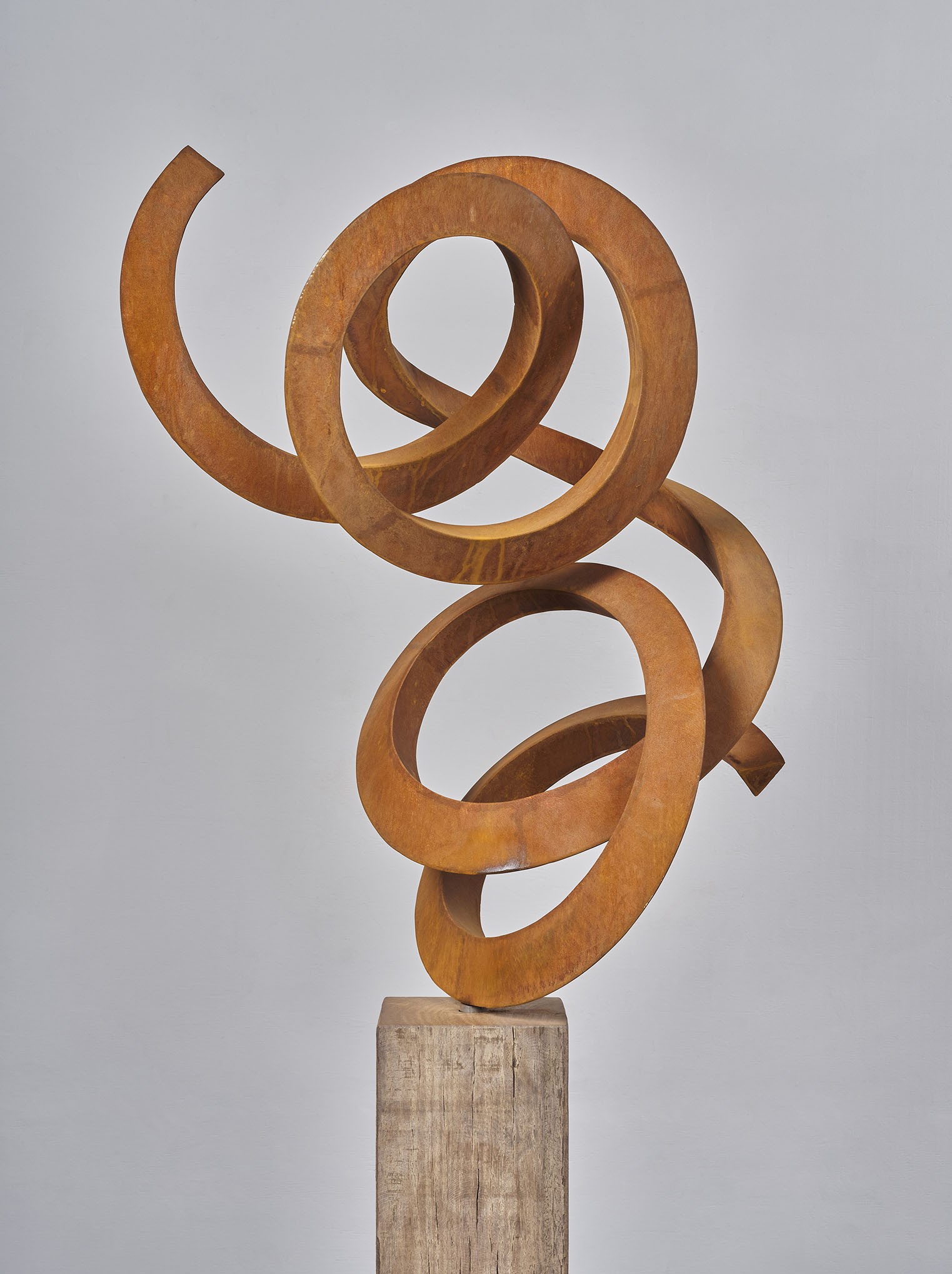 Pieter Obels, born in 1968 in Kruisland and later studying at the Academy for Fine Arts in Tilburg in 1992, is an artist whose sculptures challenge the conventional perception of steel as an austere and rugged material. Despite working primarily with Corten steel, known for its robustness, Obels’ creations defy expectations by embodying a sense of lightness and grace through intricate, delicate, and sinuous shapes.