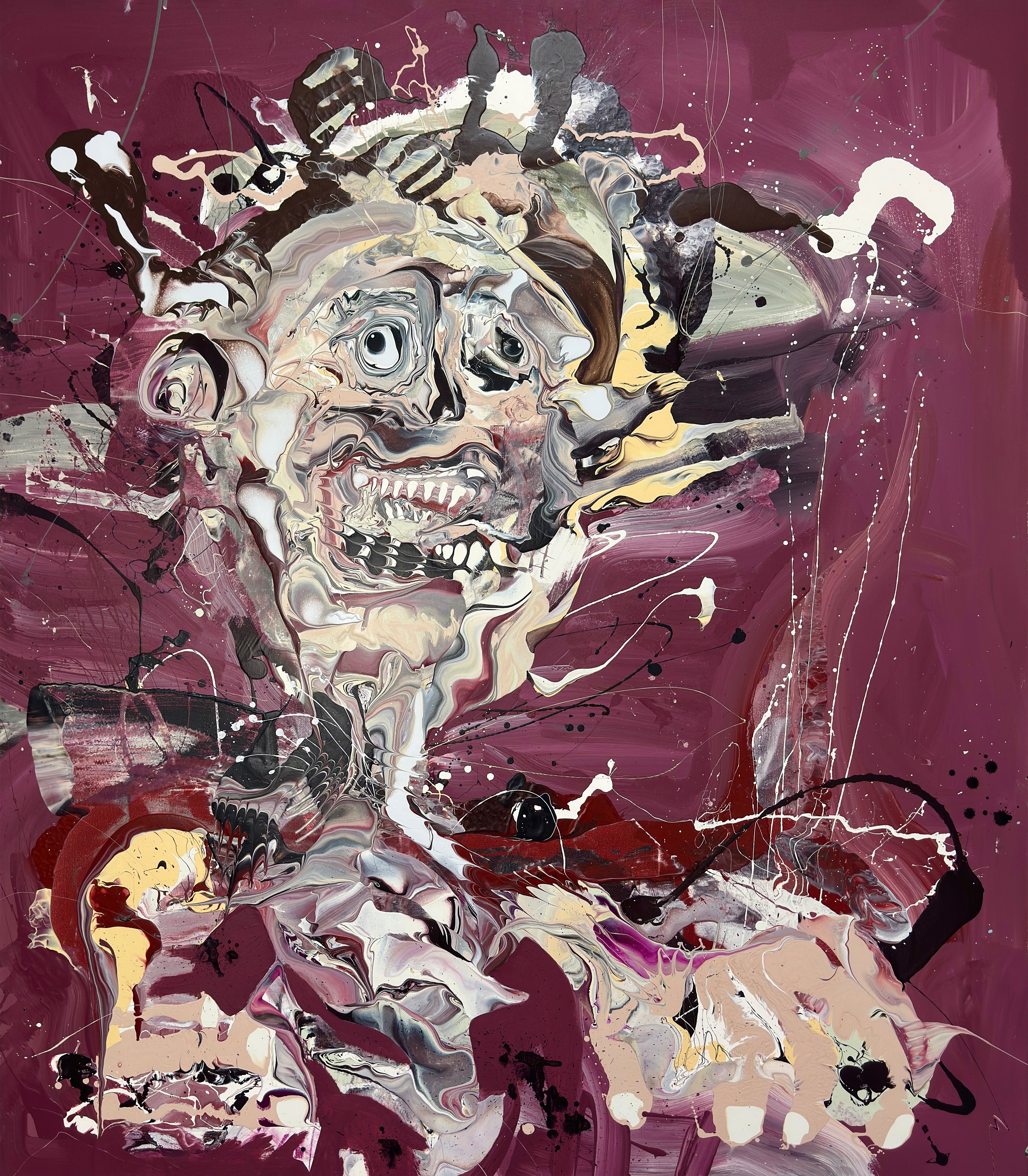 Acrylic, ink and dye on canvas